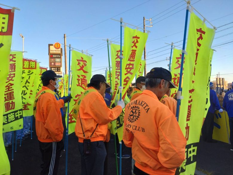 年末の寒い中9名の浜北ロータリーメンバーが参加いただきました。人口10万人当たりの人身事故件数で、浜松市が政令指定都市で16年連続ワースト1位になっています。良い年を越すために皆さん安全運転をお願いします。