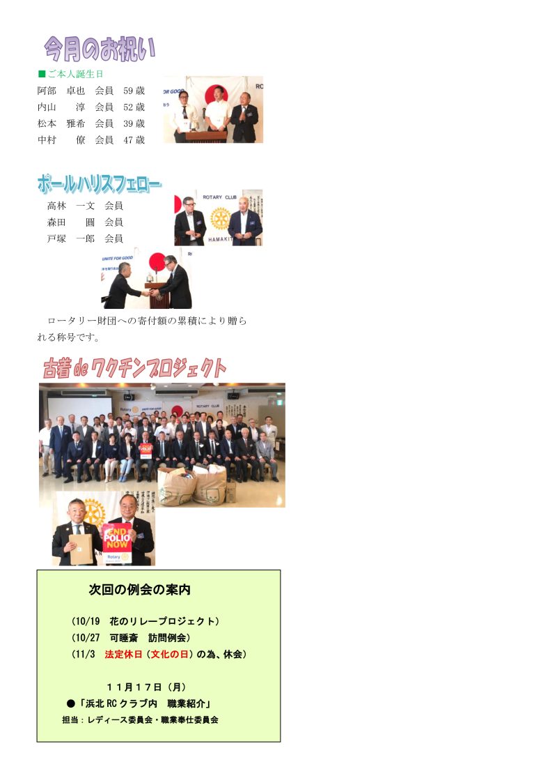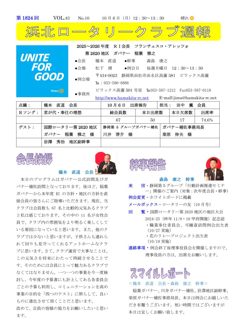 第1824回 浜北ロータリークラブ 週報