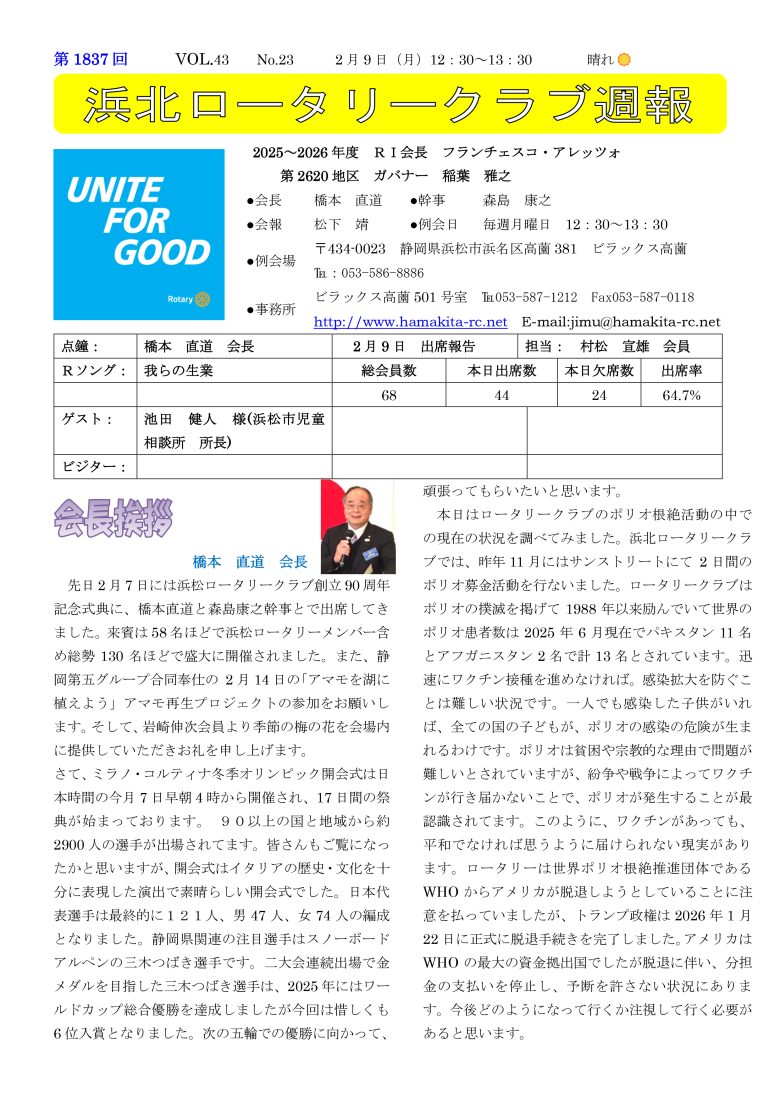 第1837回 浜北ロータリークラブ 週報